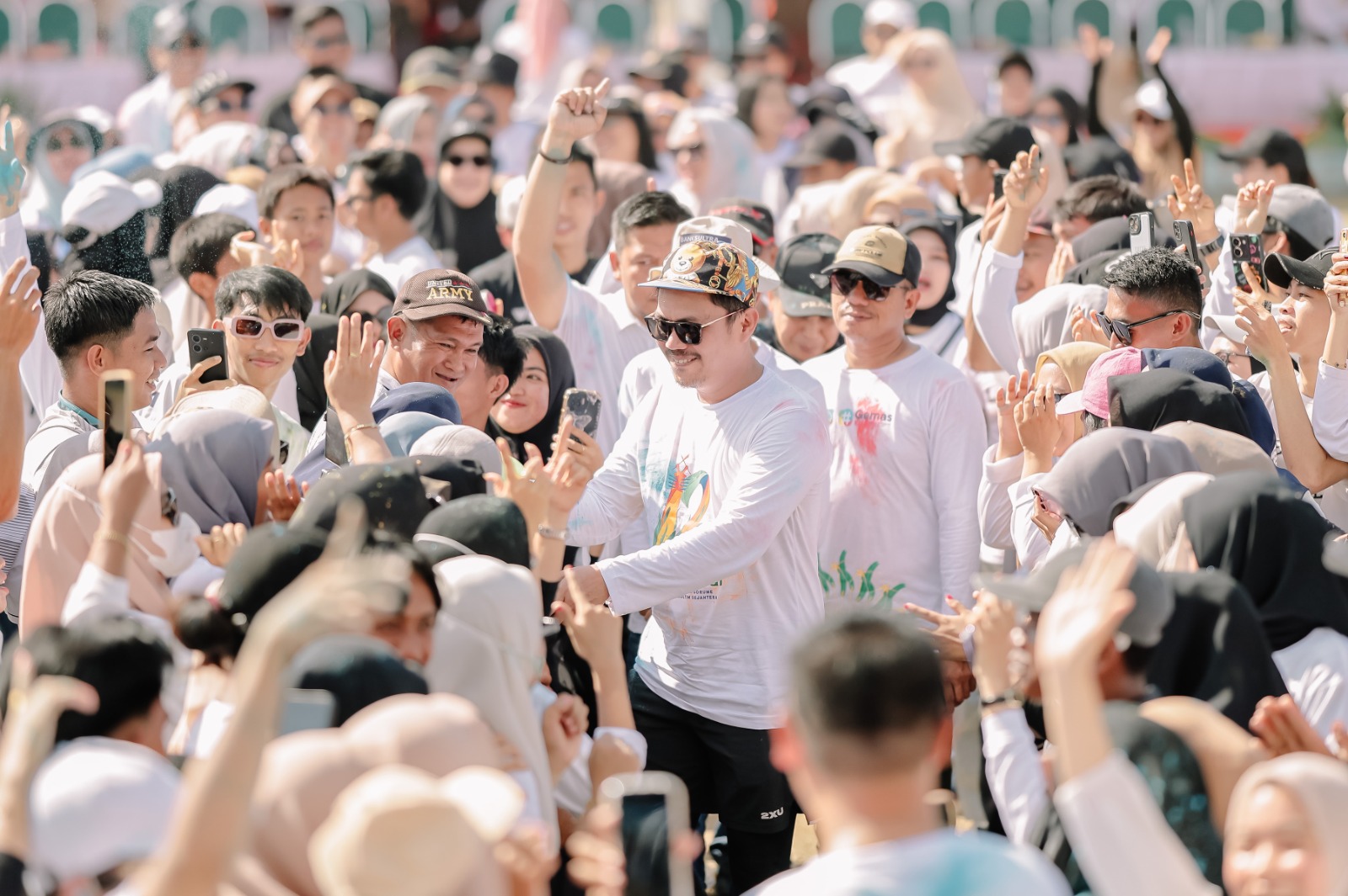 Vritta.id-Puluhan ribu masyarakat Wonua Sorume memeriahkan acara color run, dalam rangka peringatan HUT Kolaka Timur yang ke-12 di Kecamatan Ladongi, Minggu, 12 Januari 2025.